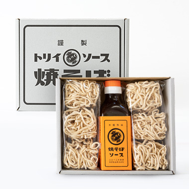 麺とのバランス、甘味(甘酒と黒柿)と酸味(レモン果汁)の持続性など焼そばソースならではの特徴がふんだんに盛り込まれています。麺は地元の金子食品工業所に特注の型で作っていただいた全粒粉入りの乾麺を用意しました。
